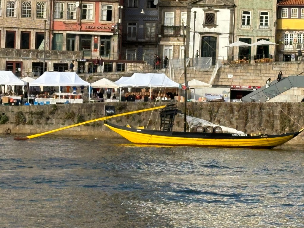 This is a traditional tail boat, which was used to bring the port wine barrels to the caves where they were stored for aging.