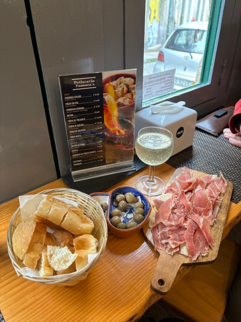 We thought we had ordered pork noodles and sautéed onions. We received smoked pork shavings, olives, and bread.