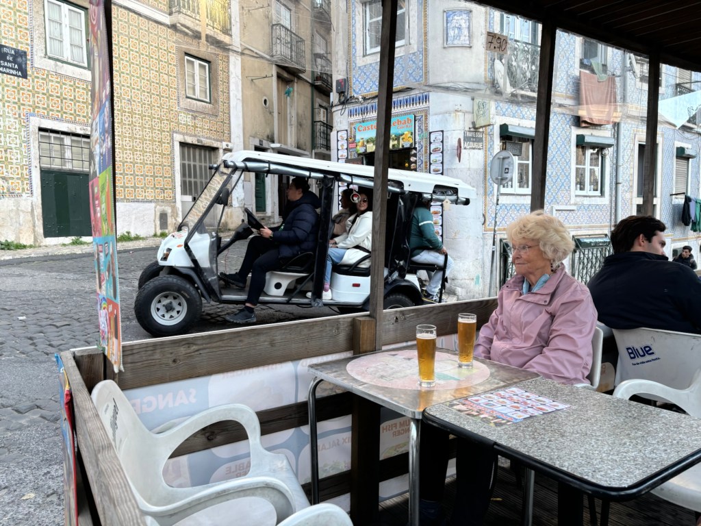 Both travelers are ready to push on into what is anticipated to be a more foreign culture in Morocco. Exploring Lisbon has been more difficult from here in the Alfama district than other places we have stayed in Portugal. Information booths are closed and distances between places of interest are greater, thus the use of the transportation system is necessary, but complicated. Just buying bus tickets to Spain took most of a day as getting to the main bus terminal required using the subway and asking a young person for help to buy the tickets for the subway at the automatic ticket dispenser which was the only way to buy a ticket. Once at the bus station in a very modern District of the city, we hunted for an actual place and person to buy a ticket for long distance express bus travel. Nothing seems easy here. Maybe it is the off-season which is the problem, but we have blamed it on the cruise ship empire of tourism. This past week three such floating hotels have docked here at the Alfama District. We have five more days here and then an all night bus ride 10 PM to 10 AM which seems to make the transition out of Portugal very appropriate into the next phase of our journey.